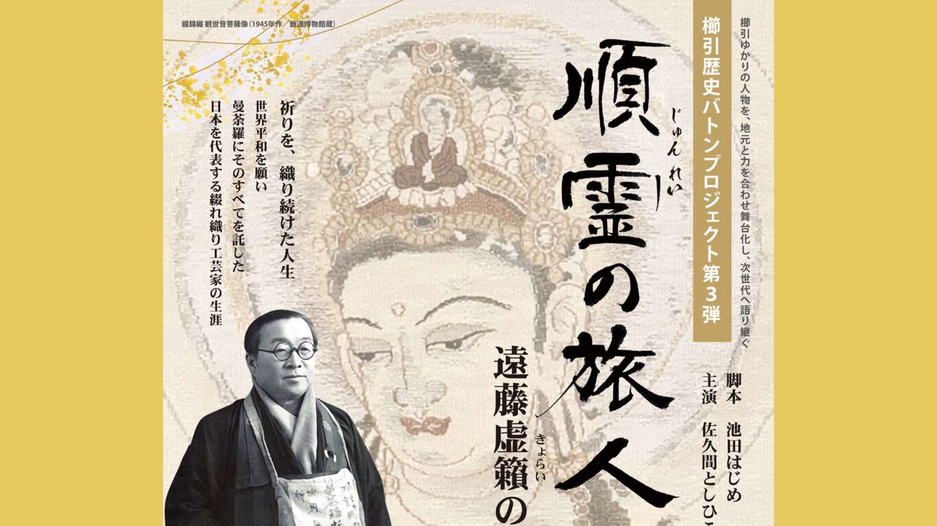 つづれ織りという織り方は繊細で精緻な作品を生み出すことができる一方、大変な手間と時間のかかる織り方です。遠藤虚籟という人物が何を想い、平和を祈っていたかを遠藤虚籟の書籍や、様々な方からのお話しを聞いて一つの作品として上演いたします。